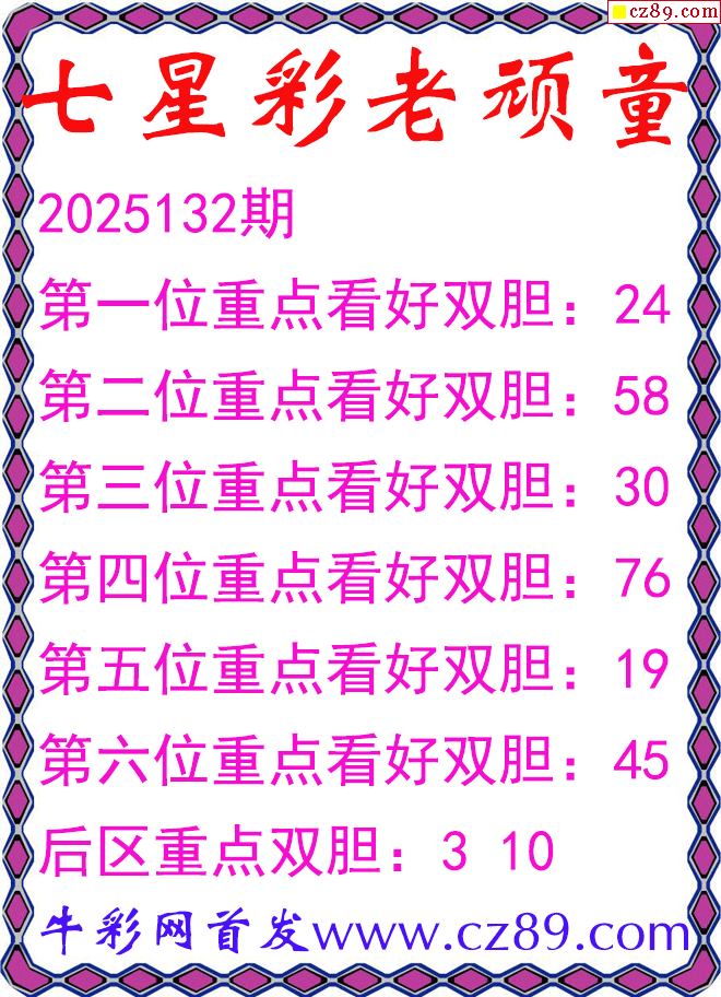 25年老酒鬼132期七星彩胆码推测图